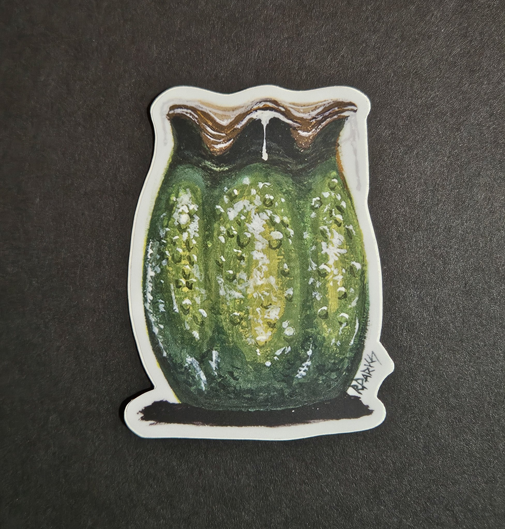 Originally painted with gouache on watercolor paper, this sticker measures 2.6 x 3.43 inches.